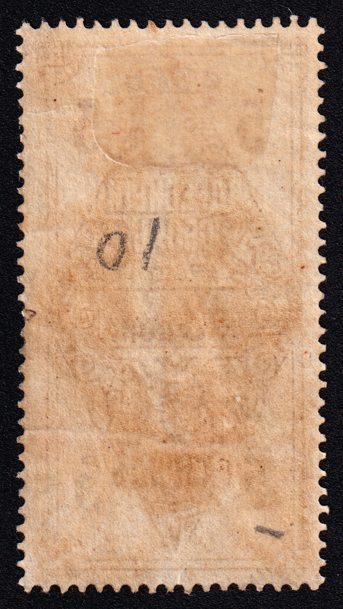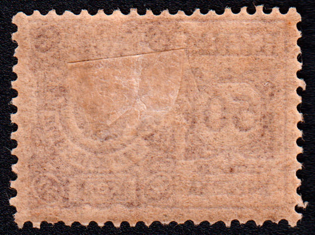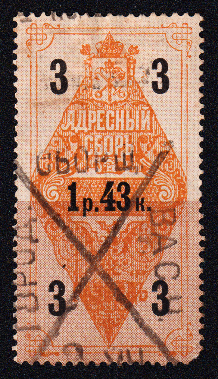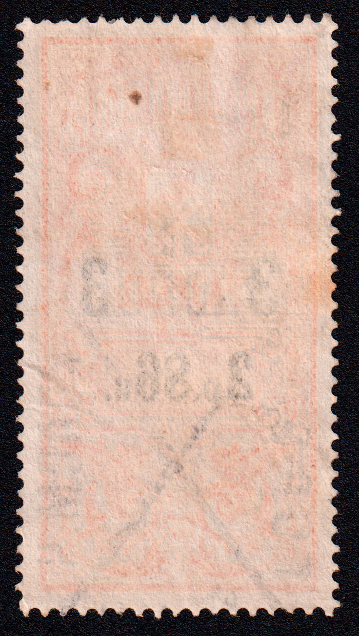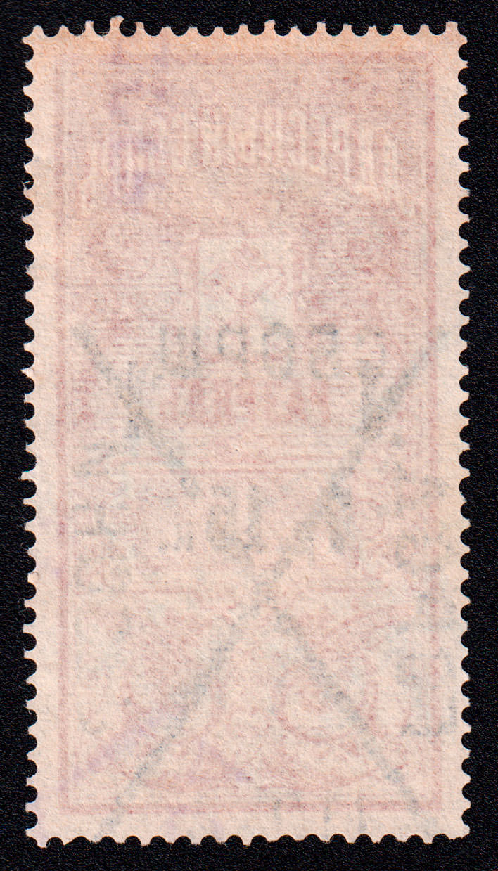 Марка учетного назначения, использована в качестве почтовой. Печать: типографская. Гильошированный фон. Wm 7. Перфорация гребенчатая 13.