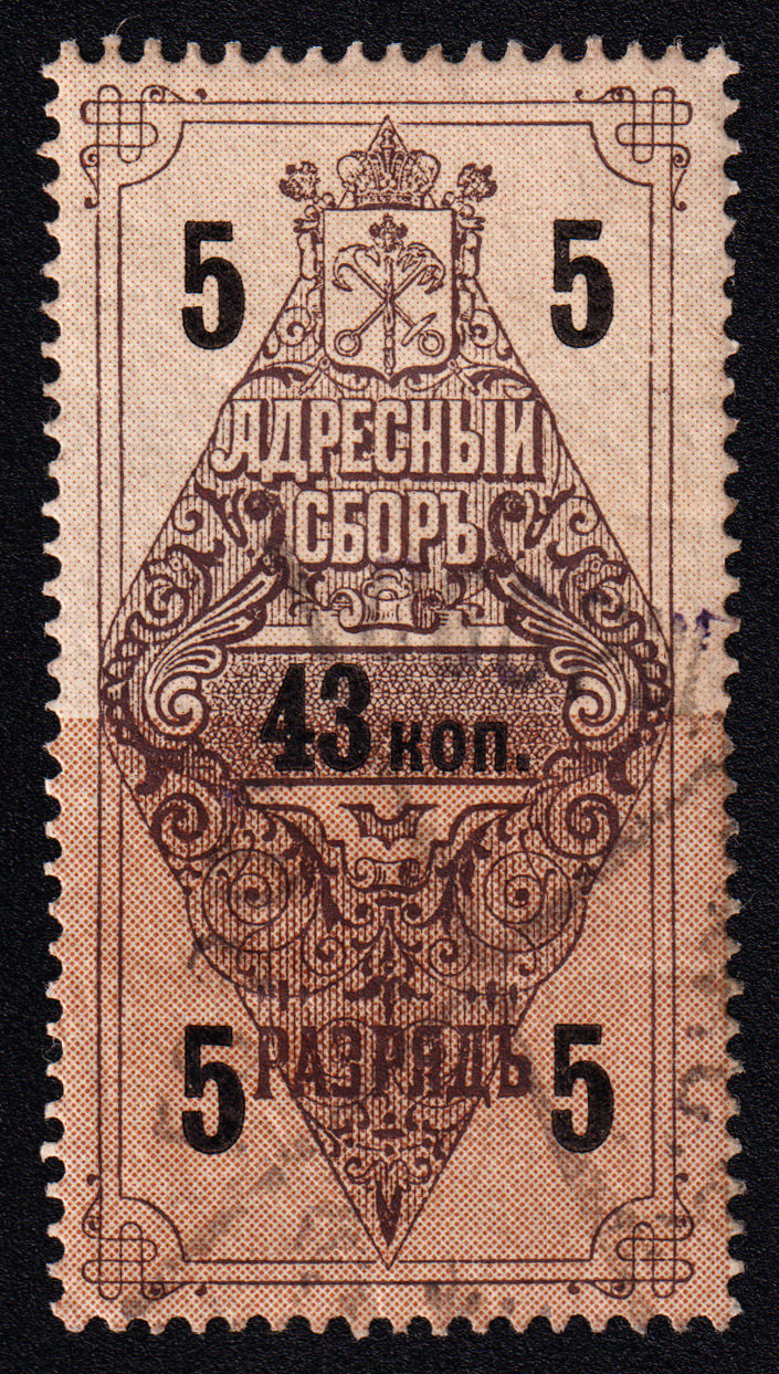 Второй выпуск адресного сбора. 5 раряд. Печать: типографская. Бумага тонкая, Owm. Фон — гильошированная сетка и точки. Размер рисунка 23х46