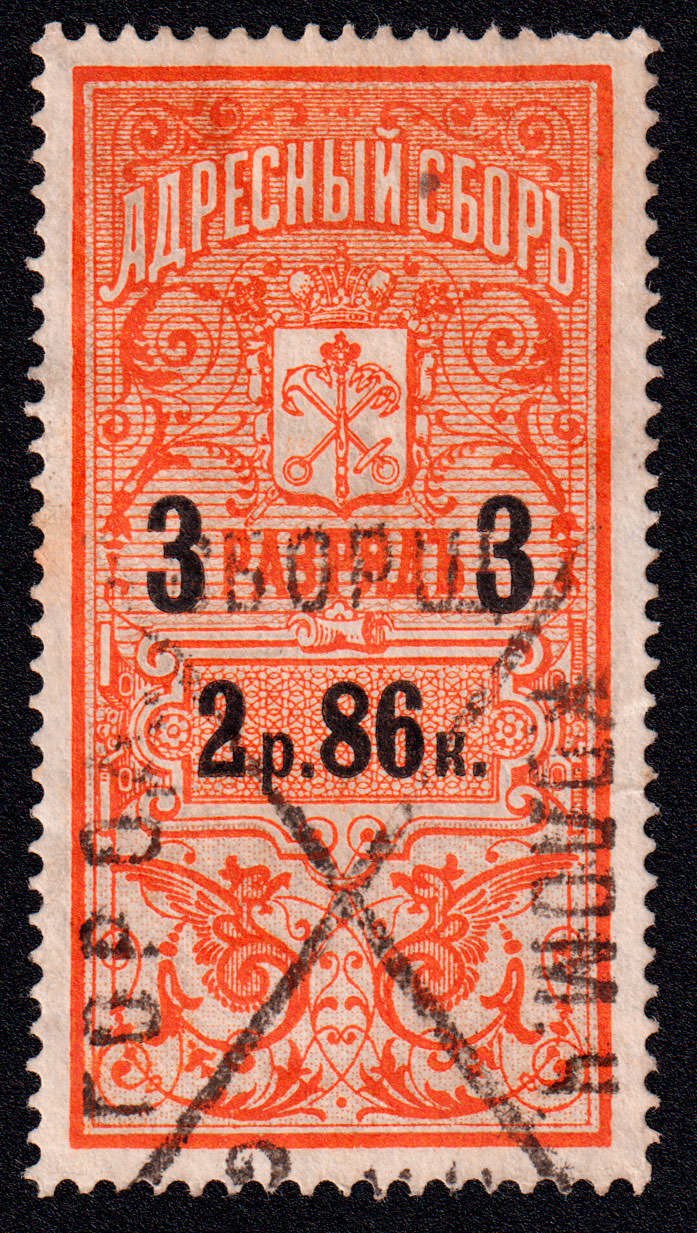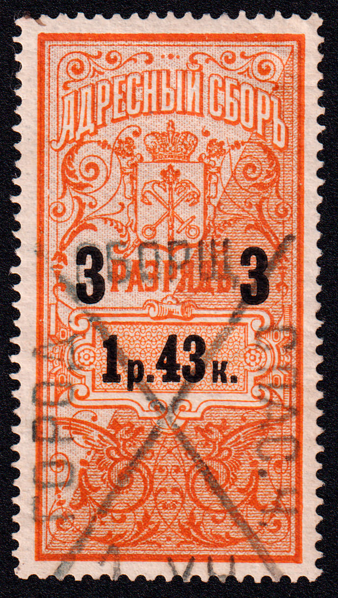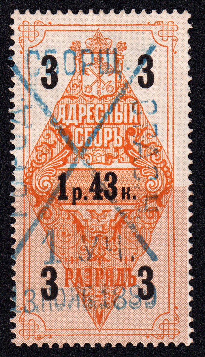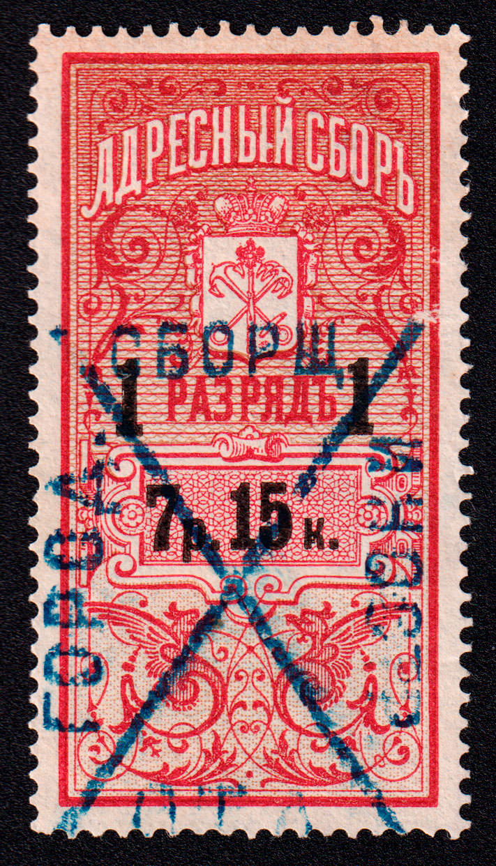 Второй выпуск адресного сбора. 1 раряд. Печать: типографская. Бумага тонкая, Owm. Фон — гильошированная сетка и точки. Размер рисунка 23х46