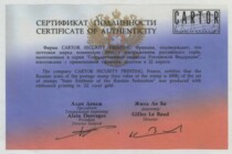 Кат. № Бл 34. Размер 150 х 100 мм. К блоку приложен сертификат подлинности с текстом на русском и английском языках. Тираж – 100 000. Печать: офсет, конгрев золотом. Перфорация рамочная 13 1/2.
