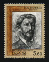 2) В.А.Серов «Девочка с персиками». 5 р. 60 к. Кат. № 1102. Тираж – 230 000. Печать: офсет с лакированием. Перфорация гребенчатая 12.
