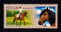 4) Якутская лошадь. 6 р. Кат. № 1143. Тираж – 230 000. Печать: офсетная. Перфорация гребенчатая 11 1/2.