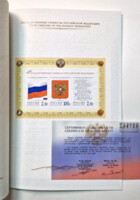 В буклете сброшюрованы листы с блоком Бл 34, квартблоками марок из него с разделительными полосами и листы с текстом об истории государственных символов России (на русском и английском языках). Буклеты отпечатаны в типографии фирмы «Cartor Security Printing» (Франция). К каждому буклету приложен сертификат подлинности с текстом на русском и английском языках.