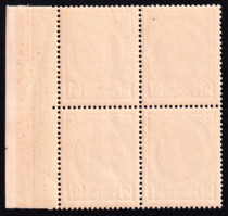 Кат. № 104 Tf. Абкляч центра. Печать: типографская. oWm. Перфорация: рамочная 14 1/4 : 14 3/4. С вертикальной меловой сеткой.