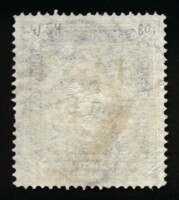 Кат. № 105 Tb. Сдвиг центра. Печать: типографская. oWm. Перфорация: рамочная 14 1/4 : 14 3/4. С вертикальной меловой сеткой.
