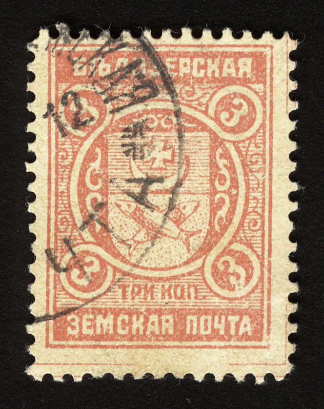 В отличие от выпуска 1893-1901 гг. рыбы в гербе расположены наоборот (верхняя "смотрит" влево, а нижняя – вправо).