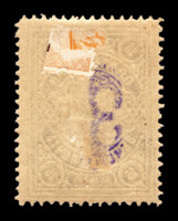 Кат. № 24. Печать типографская. Бумага белая. Перфорация линейная 13 1/4. Изг. ЭЗГБ. Надпечатка ручным фиолетовым штемпелем нового номинала на марках предыдущих выпусков.