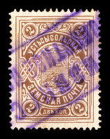 Кат. № 12 II. Со знаком краткости в слове "Устьсысольской". Печать литографская. Бумага белая. Перфорация линейная 11 1/2.