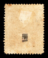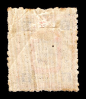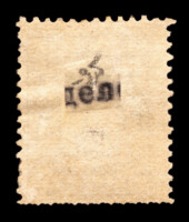 Кат. № 20. Печать литографская. Бумага белая. Перфорация линейная 11 1/2. Надпечатка ручным фиолетовым штемпелем нового номинала на марках предыдущих выпусков.