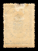Кат. № 3 III. Ширина короны 7 мм; буква "Е" в слове "ЗЕМСКАЯ" перевернута. Печать литографская. Бумага белая. Перфорация линейная 11 1/2.