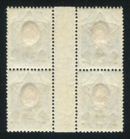 Гаттер-квартблок. Кат. № 65. Надпечатка типографская черного цвета пятиконечной звезды с серпом и молотом и нового номинала на марке 103 РИ. Перфорация рамочная 14 1/4 : 14 3/4. Тираж неизвестен.