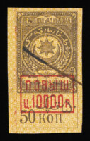 Кат. № 45. Надпечатка типографская черная нового номинала на марке 10. Тираж – 19 350 000.