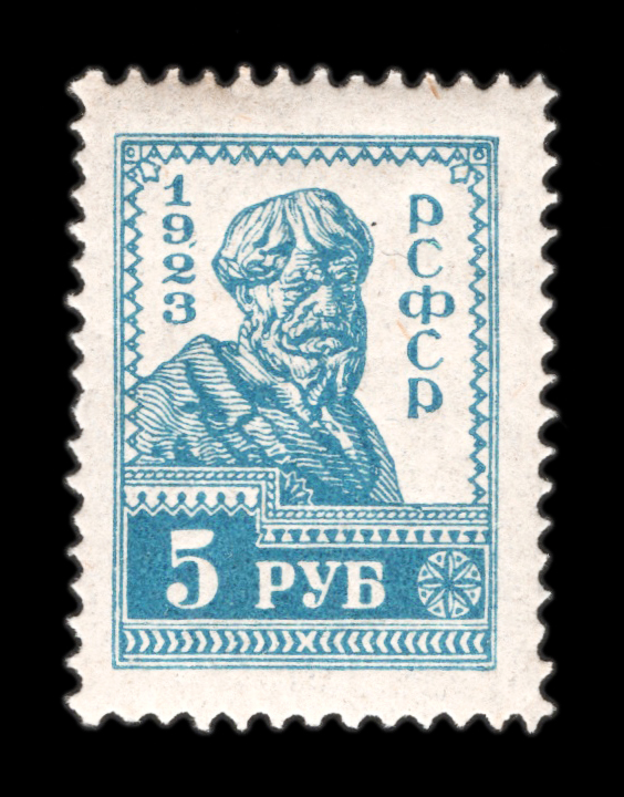Кат. № 102. Черта под 9 в "1923". Цвет: синяя. Печать: типографская. Перфорация рамочная 14 : 14 1/2. Тираж – 50 000 000.