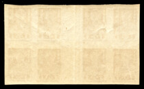 Кат. № 0107. Гаттер-блок. Цвет: коричнево-желтая. Печать: типографская. Без перфорации. В почтовое обращение не поступали.