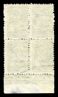 Кат. № 442. Квартблок. Цвет: зеленая. Печать: типографская, oWmk – без водяного знака. Перфорация гребенчатая 12 : 12 1/4.