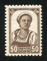 Кат. № 193. Тираж массовый. Цвет: коричневая. Печать: типографская, oWmk – без водяного знака. Перфорация гребенчатая 13 1/2. Бумага: БМ – бумага мелованная.