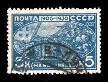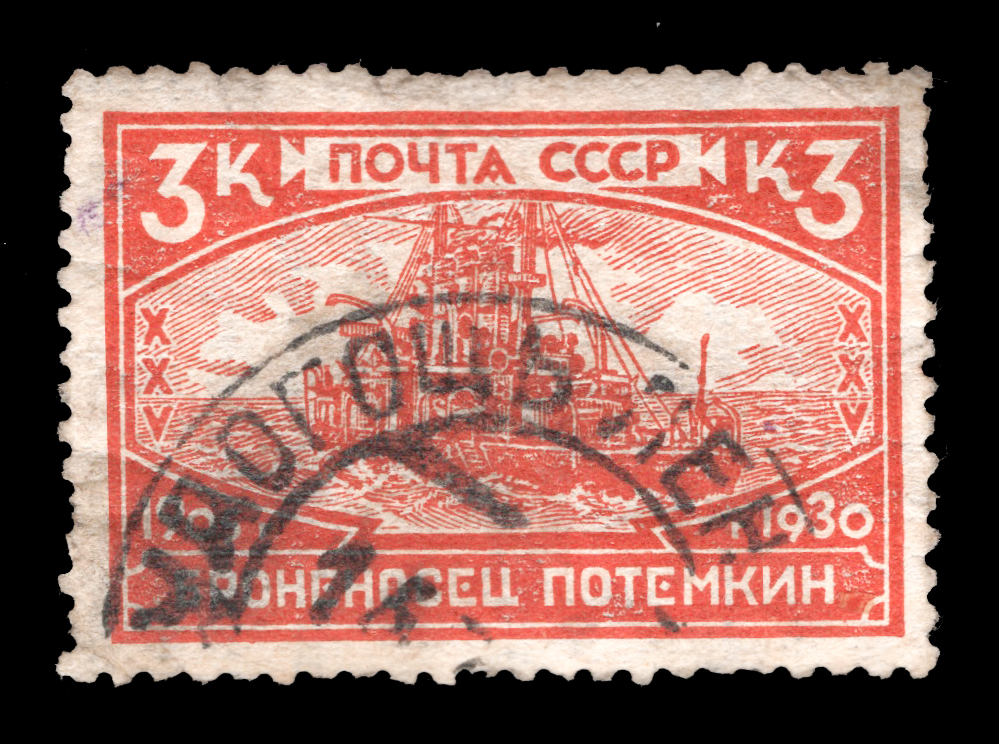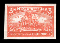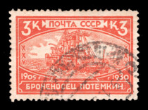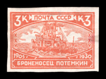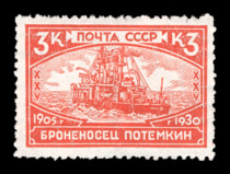 1) Броненосец "Потемкин". 3 к. Кат. № 260. Тираж – 750 000. Цвет: красная. Печать: типографская. Водяной знак – Wm 11a. Без перфорации.