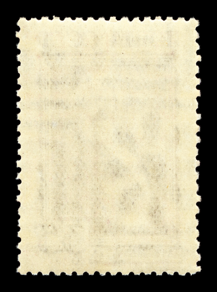 Кат. № 344A. Особая редкость. Пробная марка с надпечаткой красного цвета слова «ОБРАЗЕЦ» в центре. Клей подлинный, поверхность клеевого слоя неровная. Марка в очень хорошем состоянии. Имеется сертификат.