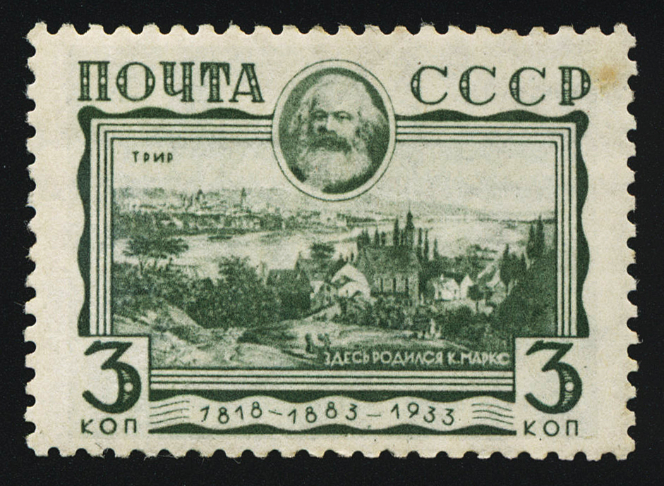 Кат. № 313. Вырезка из конверта. Гашение "Всесоюзн. Филателист. Выставка". Тираж – 200 000. Цвет: серо-коричневая. Печать: фототипия. Водяной знак – Wm 11a. Перфорация гребенчатая 12 1/4 : 11 1/4.