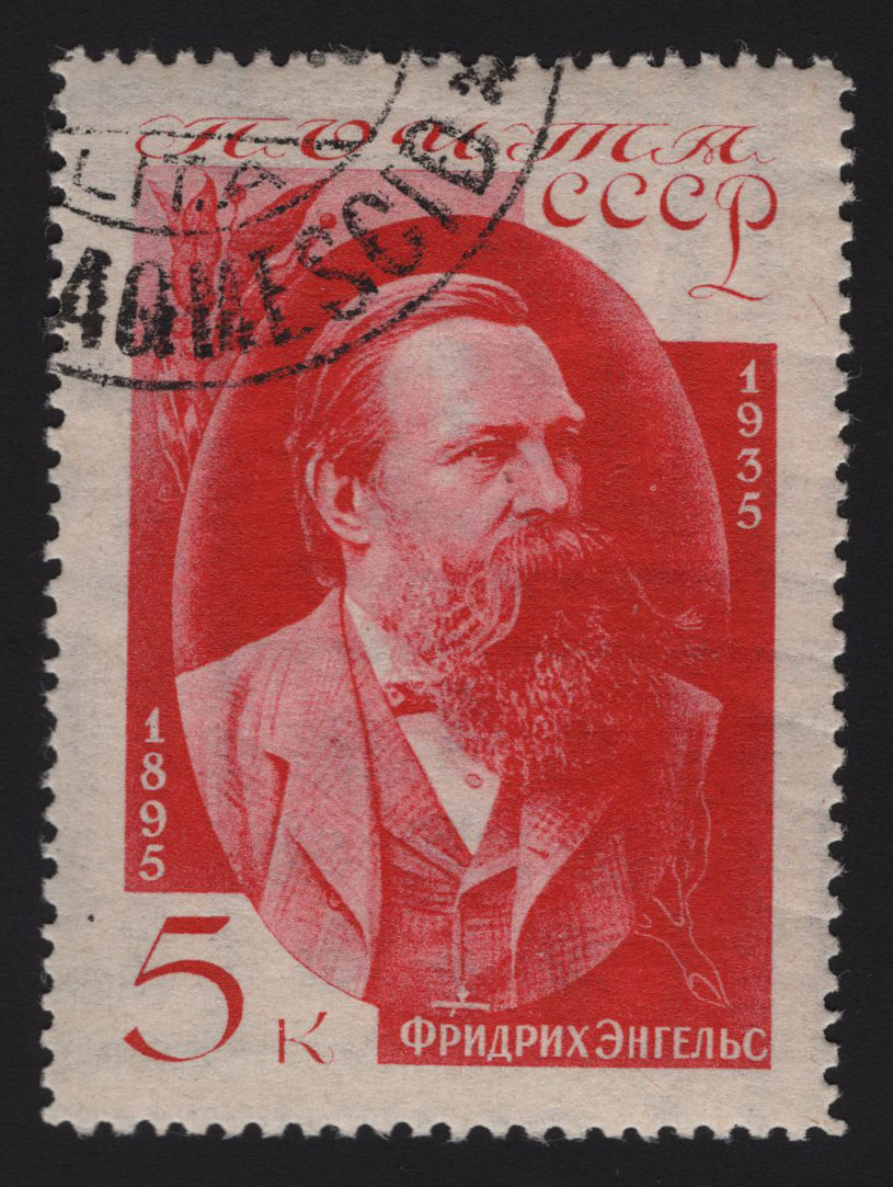 1) 1935. 40-летие со дня смерти Фридриха Энгельса. 5 к. Кат. № 416. Тираж – 200 000. Цвет: карминовая.