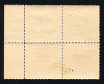 Кат. № 438A. Квартблок с полем. Цвет: вишнево-красная. Печать: глубокая. oWmk – без водяного знака. Перфорация линейная 13 3/4.