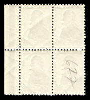 Кат. № 442. Квартблок. Цвет: зеленая. Печать: типографская, oWmk – без водяного знака. Перфорация гребенчатая 12 : 12 1/4.