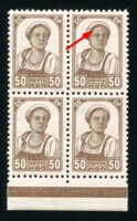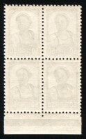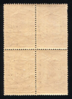 Кат. № 454. Квартблок. Цвет: светло-зеленая. Печать: типографская, oWmk – без водяного знака. Перфорация гребенчатая 12 : 12 1/4.