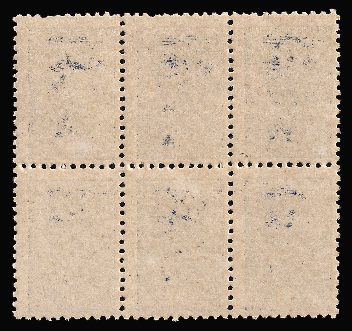 Квартблок. Кат. № 608. Цвет: синяя. Печать: типографская. Перфорация гребенчатая 11 3/4 : 12 1/4.