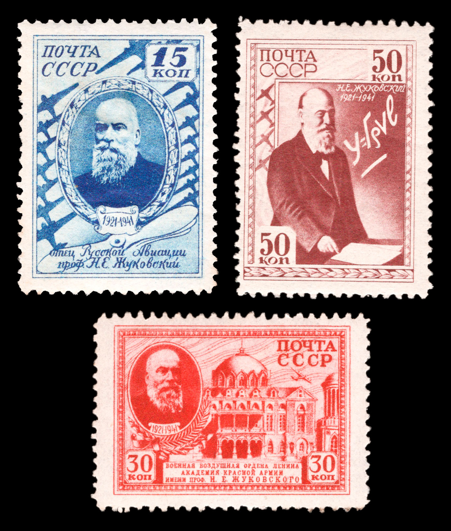 1) Портрет Н. Е. Жуковского. 15 к. Кат. № 702. Тираж – 2000 000. Цвет: синяя.