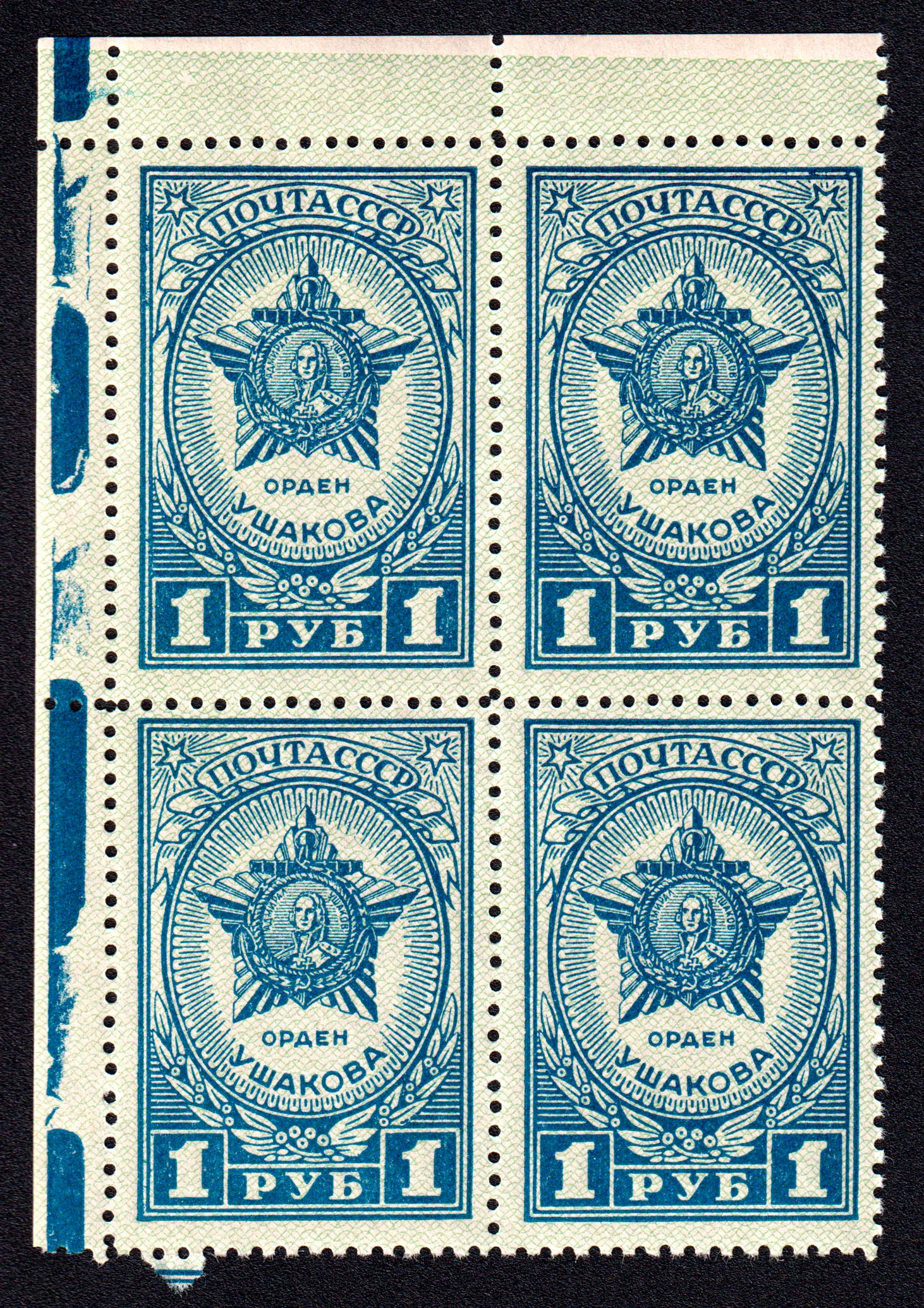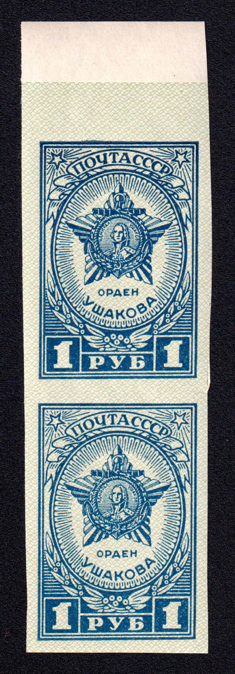 6) Орден Ушакова. 1 р. Кат. № 859. Тираж – 700 000. Цвет: серо-синяя. Печать: типографская. Без перфорации.