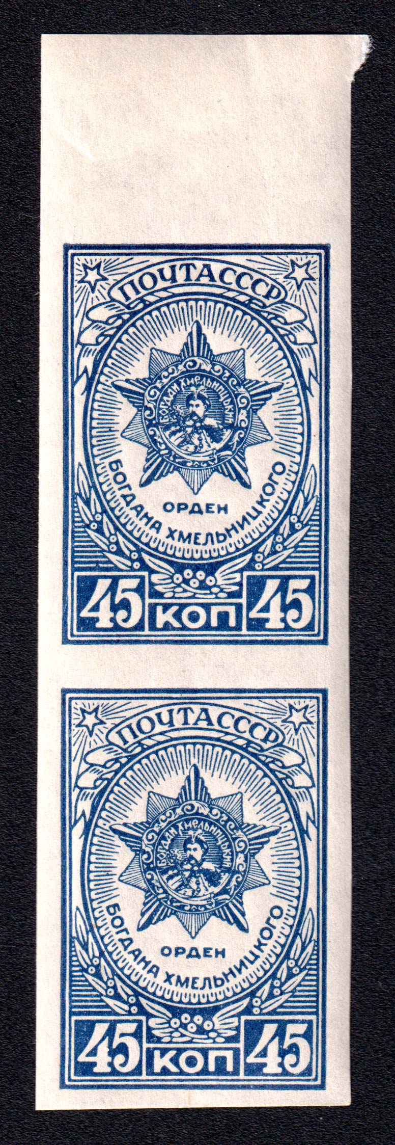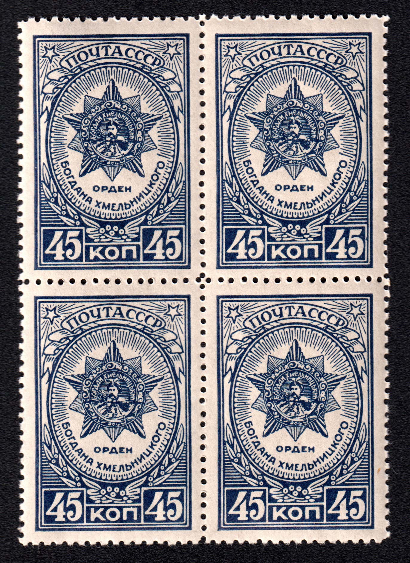 3) Орден Богдана Хмельницкого. 45 к. Кат. № 856. Тираж – 1000 000. Цвет: темно-синяя. Печать: типографская. Без перфорации.