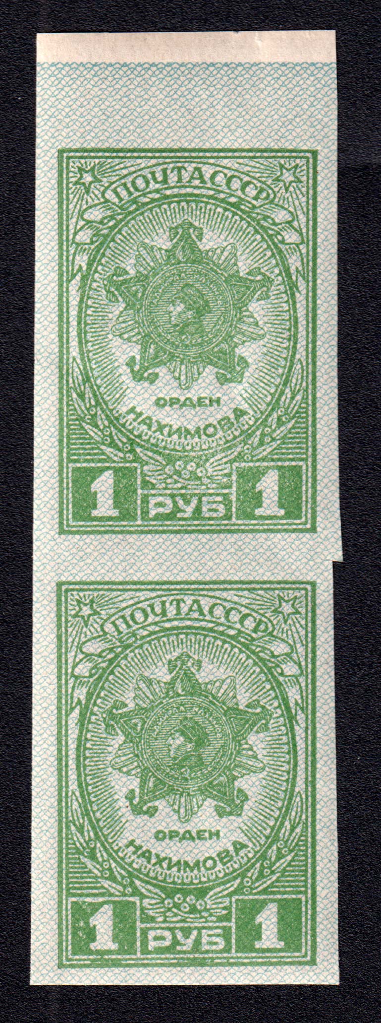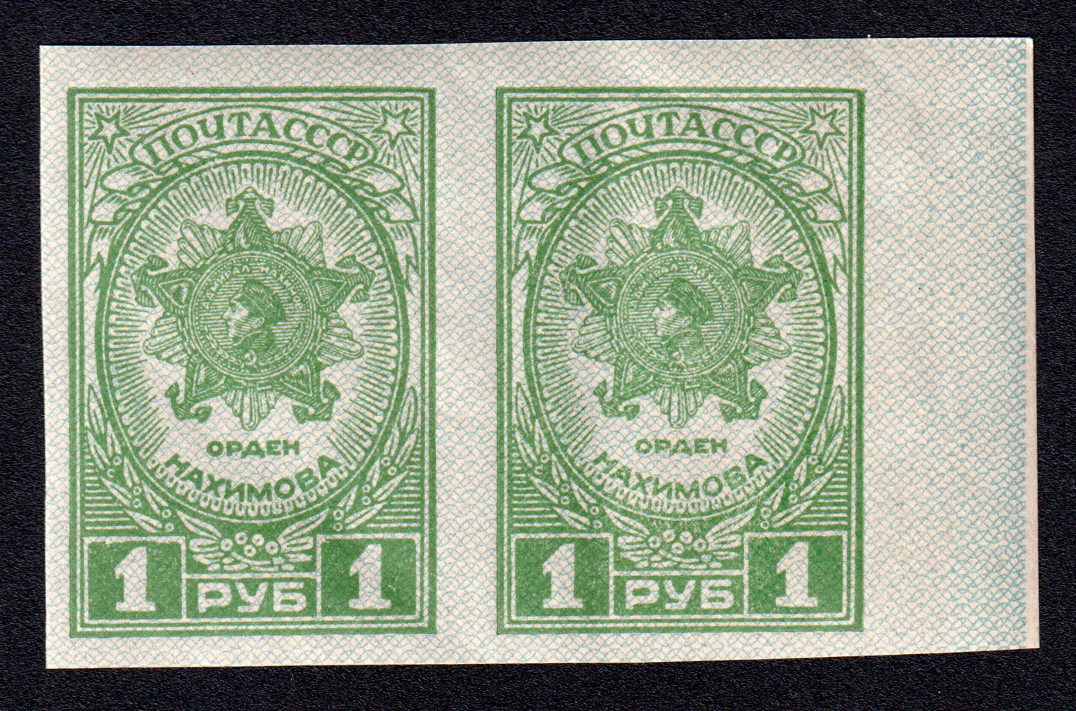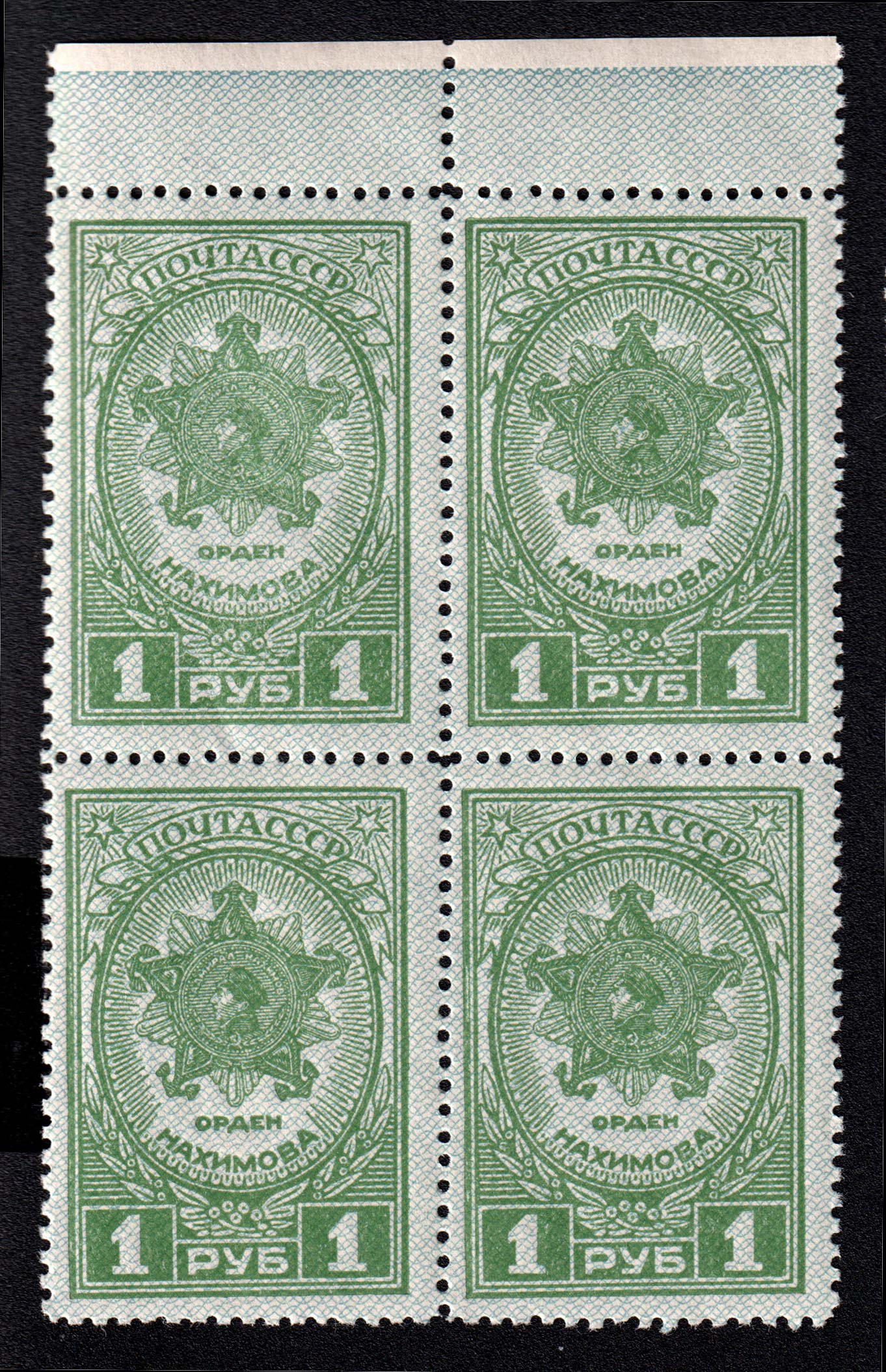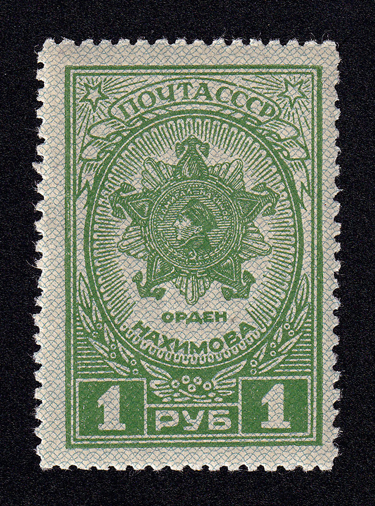 5) Орден Нахимова. 1 р. Кат. № 864. Тираж – 700 000. Цвет: зеленая. Печать: типографская. Перфорация линейная 12 1/2.