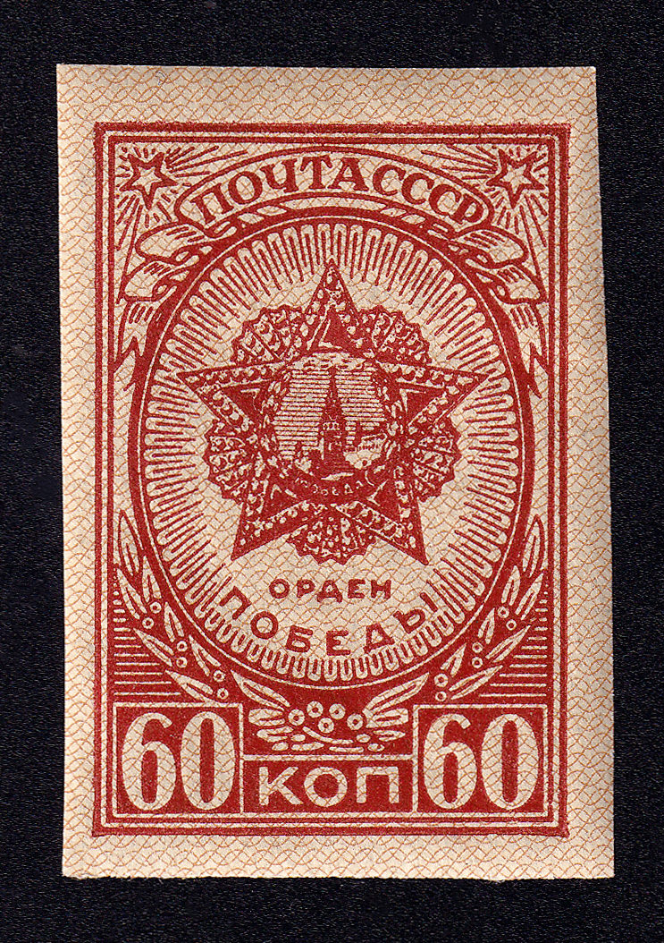 4) Орден Победы. 60 к. Кат. № 863. Тираж – 1000 000. Цвет: красная. Печать: типографская. Перфорация линейная 12 1/2.