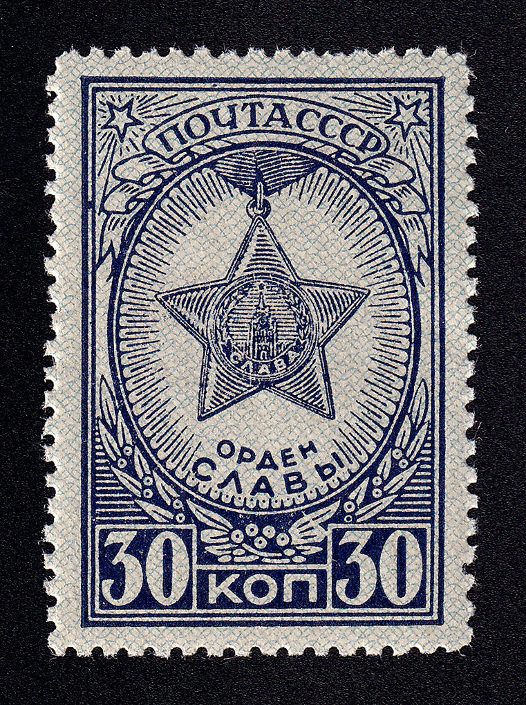 2) Орден Славы. 30 к. Кат. № 855. Тираж – 1200 000. Цвет: темно-синяя. Печать: типографская. Без перфорации.