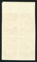Квартблок. Кат. № 805. С цветным сетчатым фоном. Тираж – 10000 000. Цвет: кармин. -красная. Печать: типографская. Без перфорации.