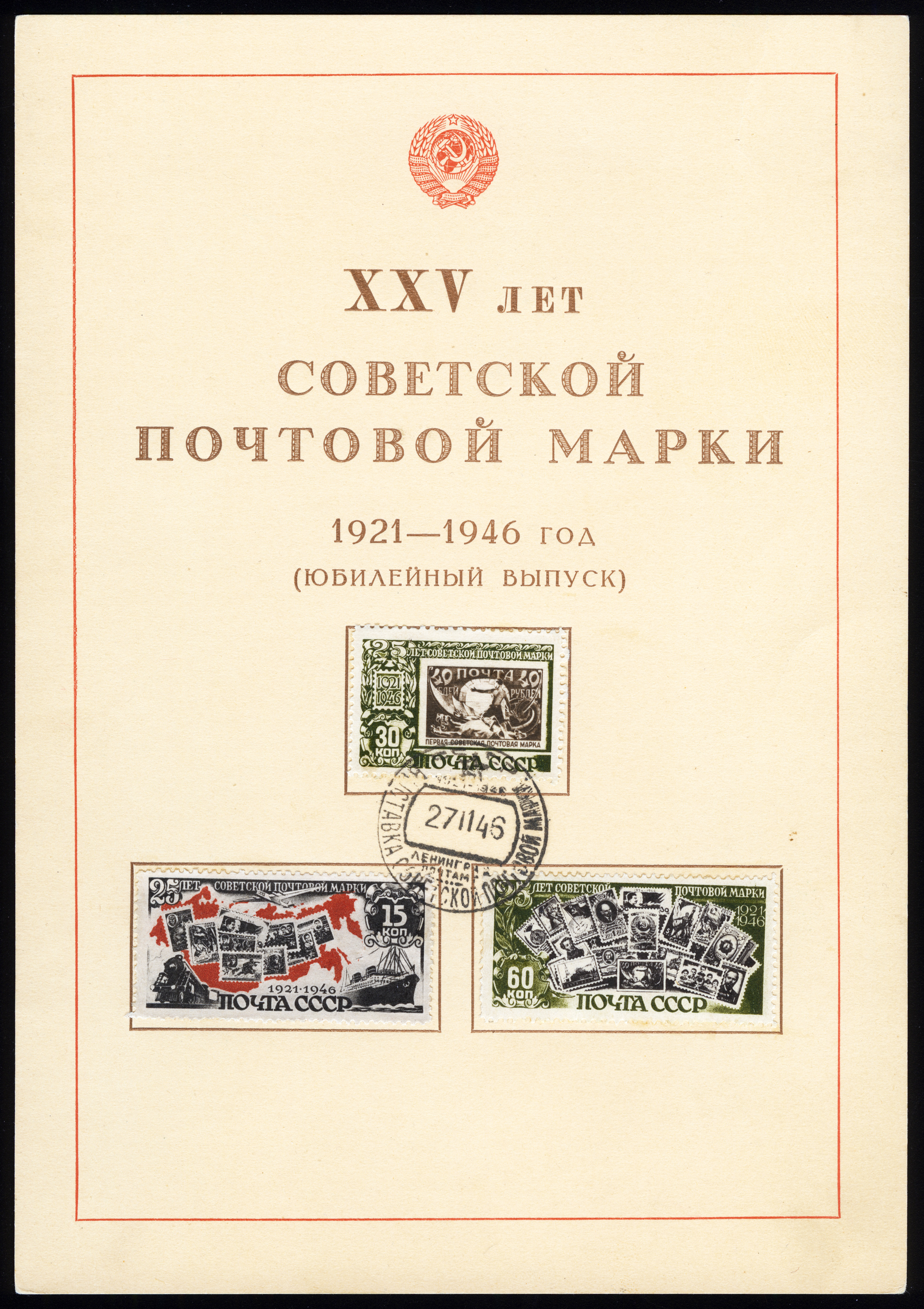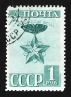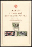 1) Изображения советских почтовых марок на фоне контурной карты СССР. 15 к. Кат. № 996(2). Тираж – 2000 000. Цвет: черная, красная. Печать: фототипия. Перфорация линейная 12 1/2.