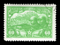 3) Изображения советских почтовых марок. 60 к. Кат. № 998(2). Тираж – 2000 000. Цвет: темно-зеленая., черно-коричневая. Печать: фототипия. Перфорация линейная 12 1/2.