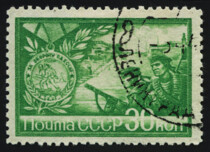 2) Барельефное изображение В.И. Ленина и И.В. Сталина. 30 к. Кат. № 1003. Цвет: зеленая.