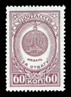 Кат. № 964. С сетчатым фоном. Тираж – 5000 000. Цвет: темно-лиловая. Печать: типография. Перфорация гребенчатая 12 1/4 : 12.