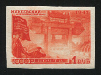 Кат. № 938(1). Тираж – 3000 000. Цвет: фиолетовая. Печать: глубокая. Растр ГР (горизонтальный ромб). Перфорация линейная 12 1/2.