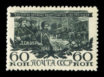 1) Штурм Зимнего дворца. 30 к. Кат. № 1089. Тираж – 500 000. Цвет: темно-зеленая, карм.-красная. Печать: фототипия. Без перфорации.