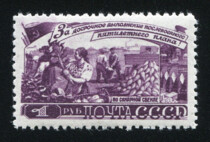 6) Сельское хозяйство. 2 р. Кат. № 1094. Тираж – 500 000. Цвет: черно-зеленая, карм.-красная. Печать: фототипия. Без перфорации.