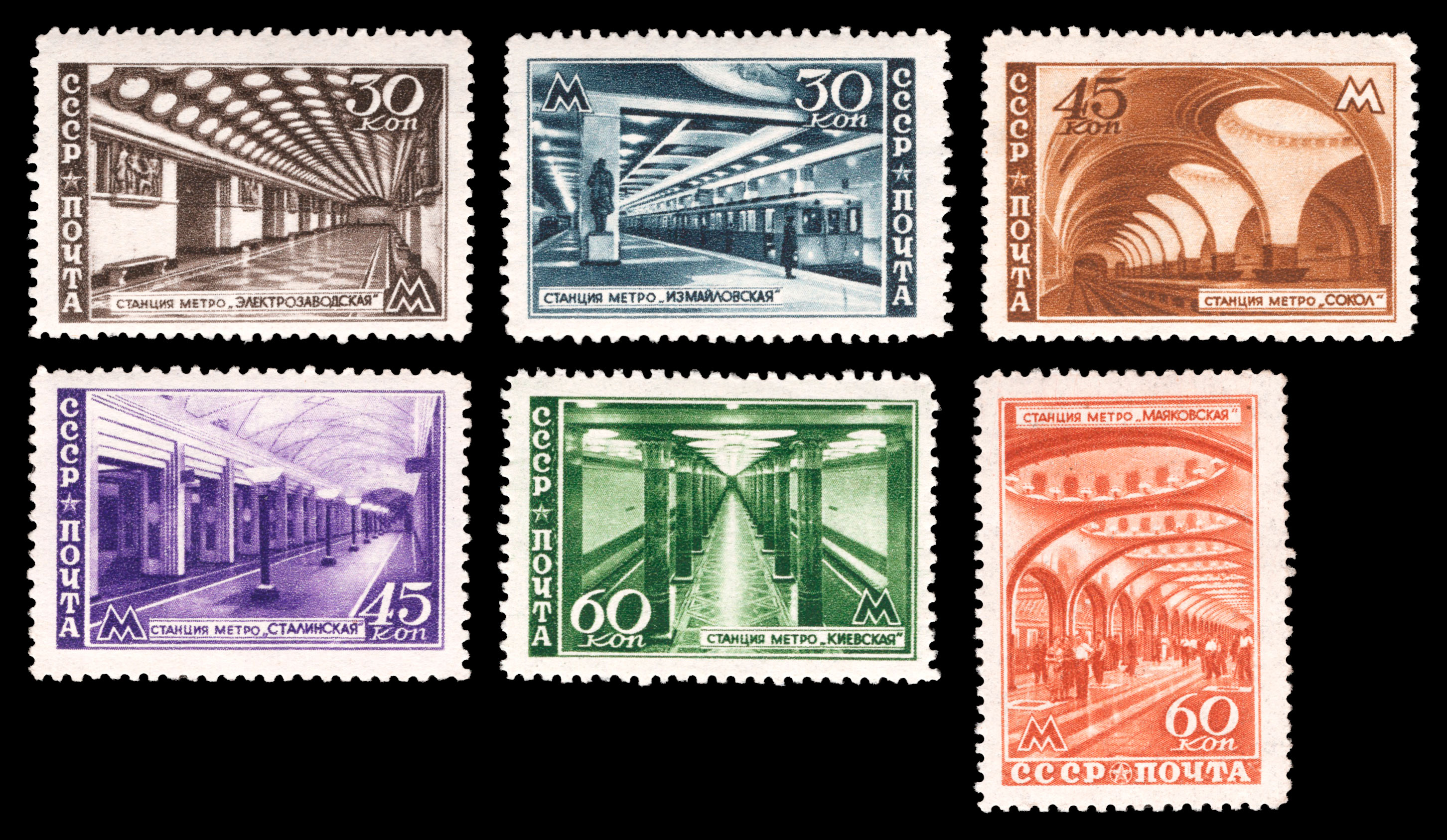 4) Станция "Сталинская" ("Семеновская"). 45 к. Кат. № 1064. Тираж – 1000 000. Цвет: фиолетовая.