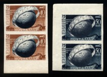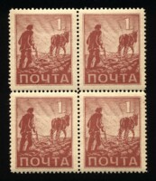 Кат. № 1235. Пара марок. Тираж – 1000 000. Цвет: красная. Печать: глубокая. Растр ГР (горизонтальный ромб). Перфорация линейная 12 1/2.