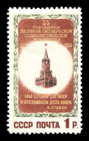 Кат. № 1236(2), 1956 г. Тираж – 2000 000. Цвет: коричневая, красная. Печать: глубокая. Перфорация линейная 12 1/4.
