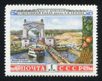 1) Плотина Цимлянской ГЭС. 40 к. Кат. № 1634. Тираж – 2000 000. Цвет: многоцветная. Печать: офсет. Перфорация линейная 12 1/4.