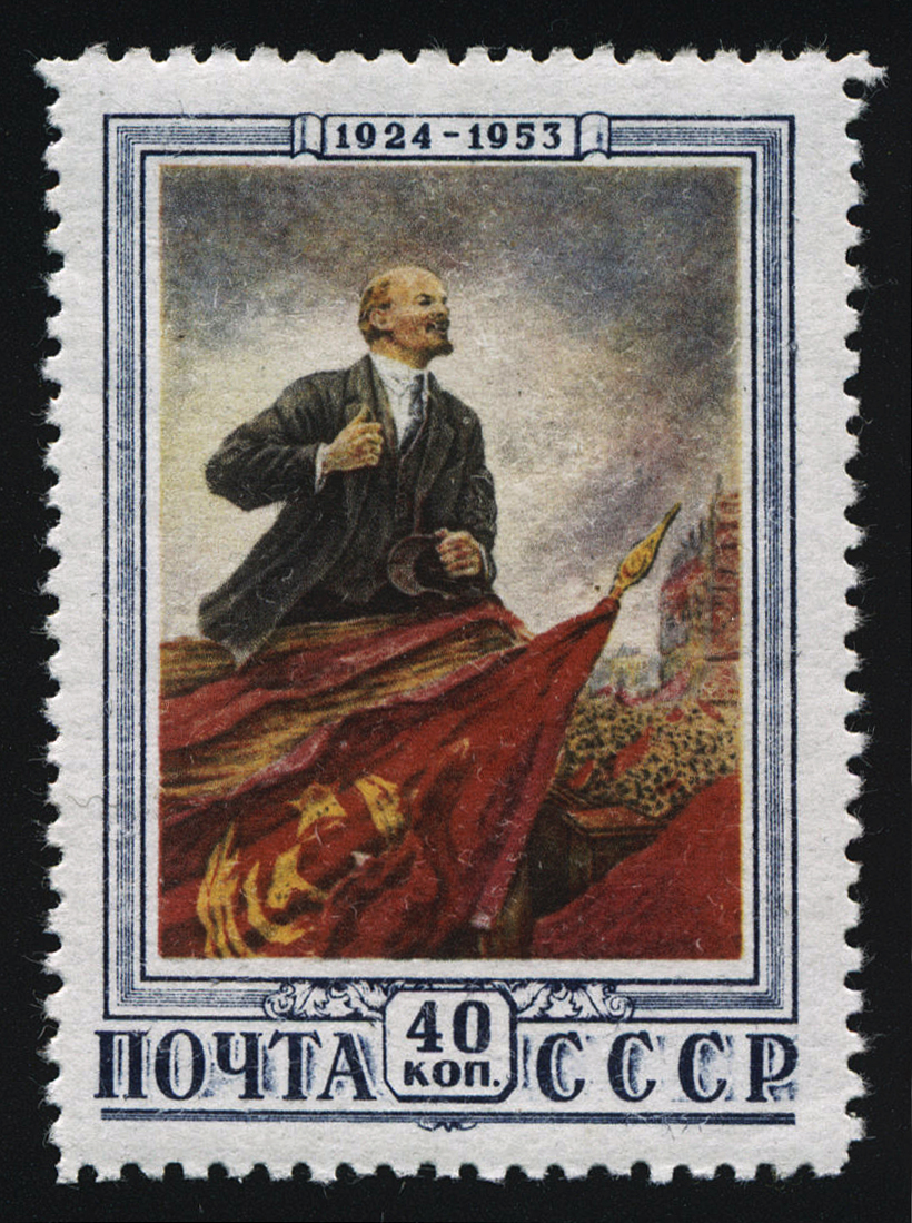 2) В.И. Ленин и И.В. Сталин в Смольном в октябре 1917. 60 к. Кат. № 1645. Тираж – 1000 000. Цвет: многоцветная. Печать: фототипия. Перфорация линейная 12 1/4.