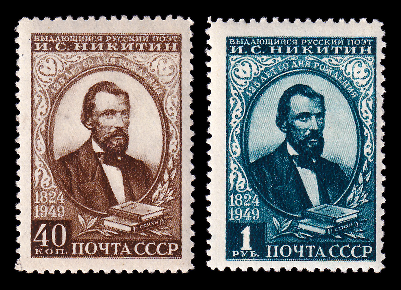 1) 40 к. Кат. № 1345. Тираж – 100 000. Цвет: серо-синяя, красно-коричневая. Печать: фототипия. Без перфорации.