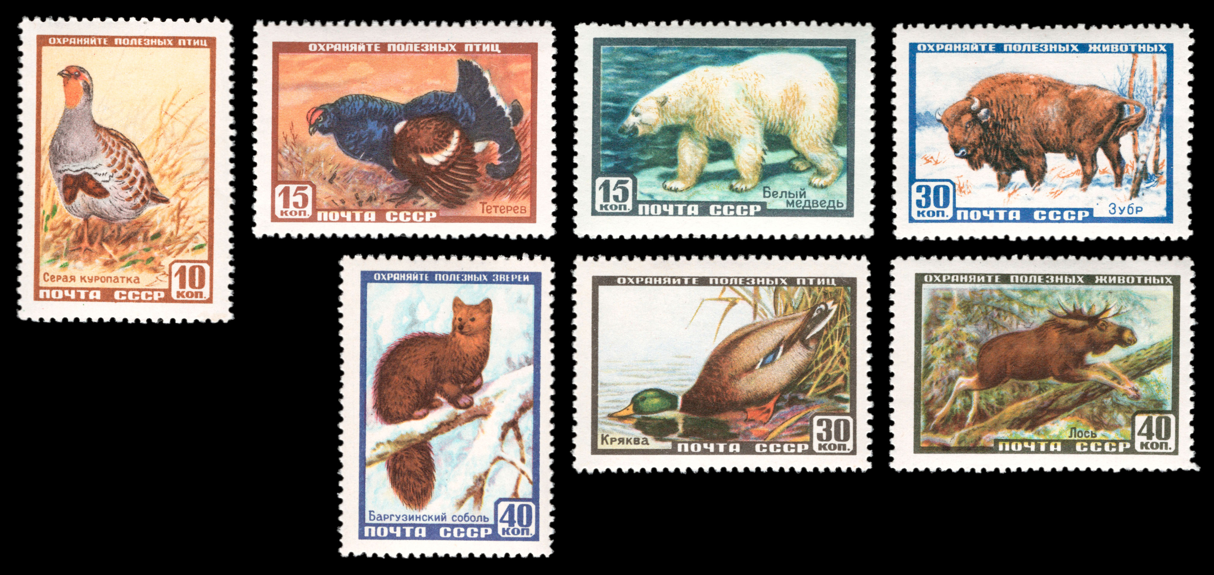 7) Баргузинский соболь. 40 к. Кат. № 1913. Перфорация гребенчатая 12 : 12 1/4.