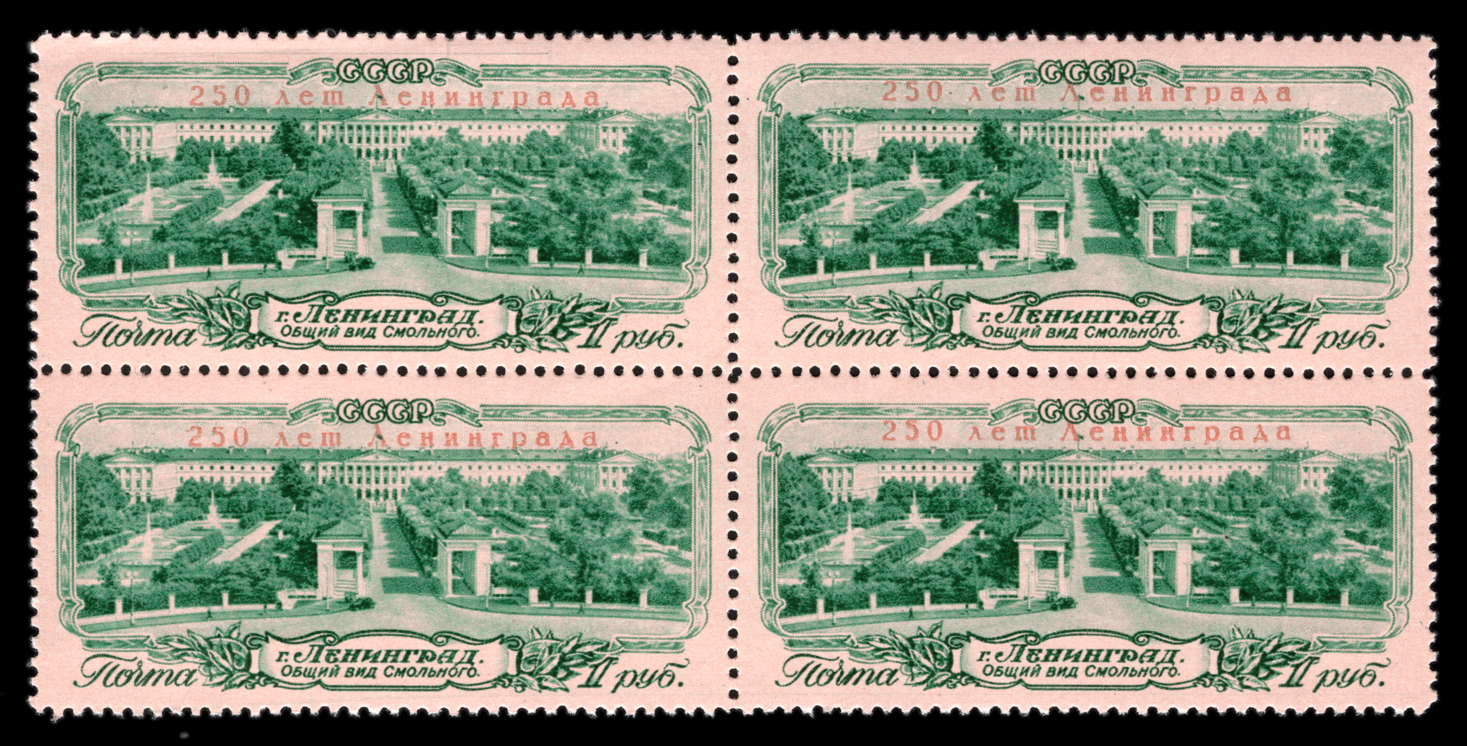 Квартблок. Кат. № 1950. Тираж – 2 000 000 офсет в сочетании с литографией. Перфорация гребенчатая 12 : 12 1/2.